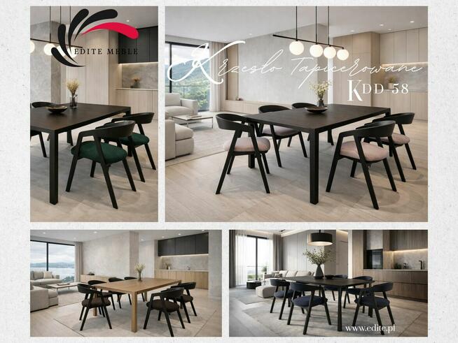 Krzesło Drewniane Tapicerowane Model KDD-58 Krzesło drewniane tapicerowane KDD-58 to solidny i elegancki mebel ...
