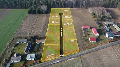 działka po podziale z dostępem do drogi publicznej poprzez wewnętrzną drogę (udział w drodze w cenie), media do ...