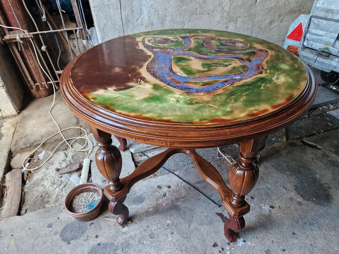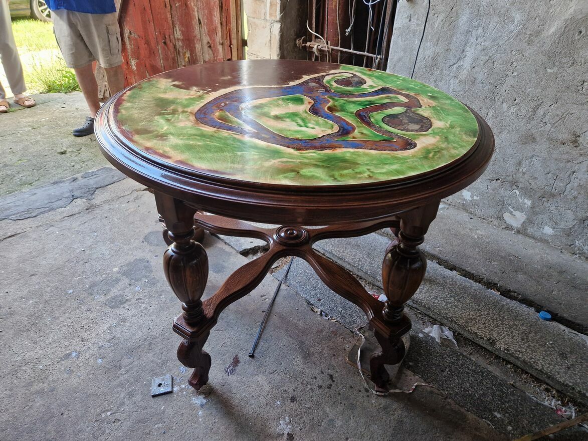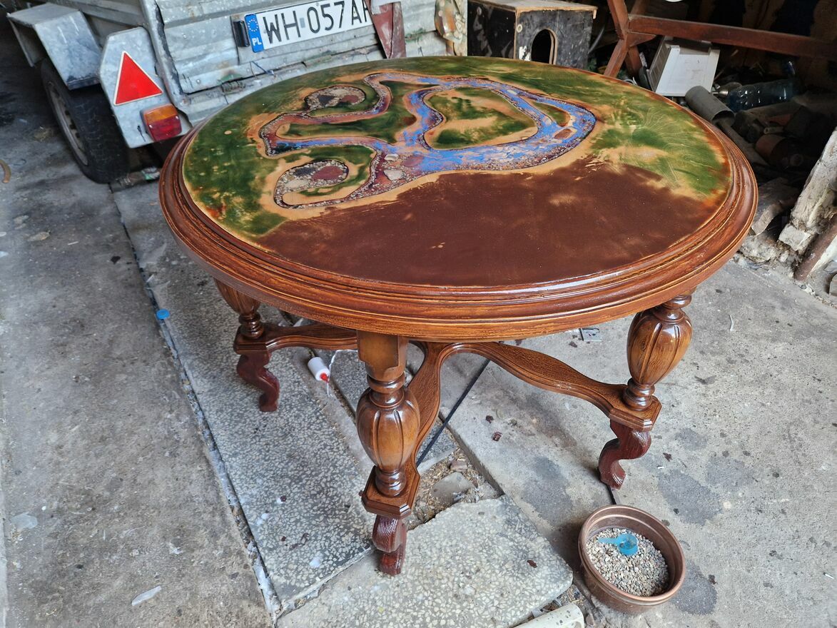 Witam.Sprzedam stół dla 4 osób (blat o kształcie koła) wlasnoręcznie wykonany.